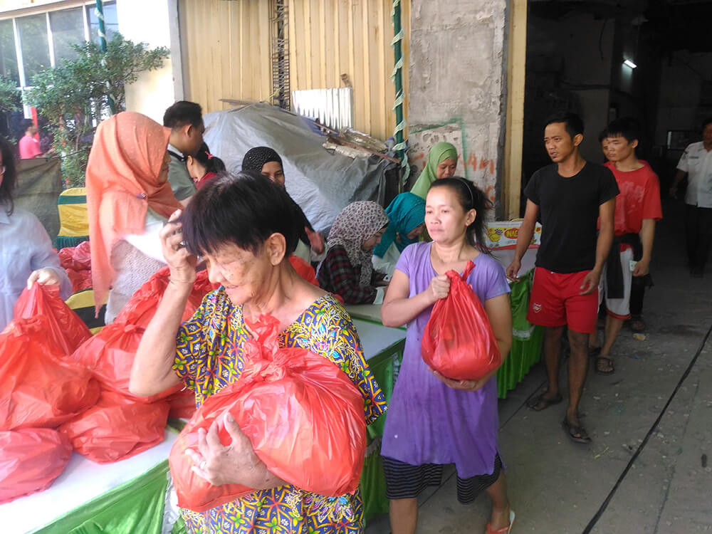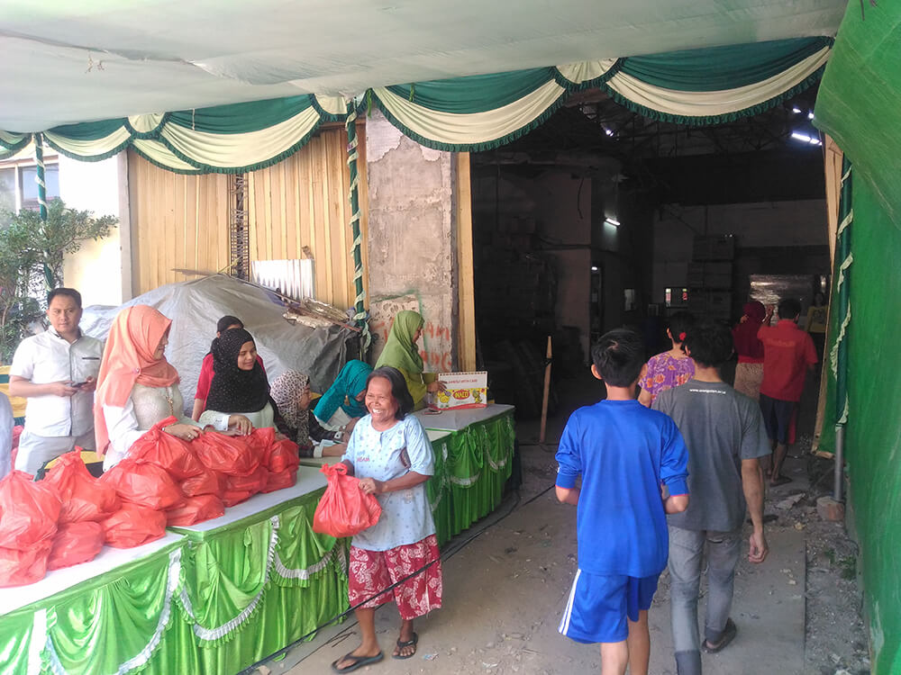 With joy, the team from PT. SUPRAJAYA DUARIBU SATU moves with a spirit of goodness, put together a package basic necessities containing rice, cooking oil, sugar, flour and a number of other basic items. Warm smiles and empathetic eyes were given to every resident who came to pick them up the basic food packages.