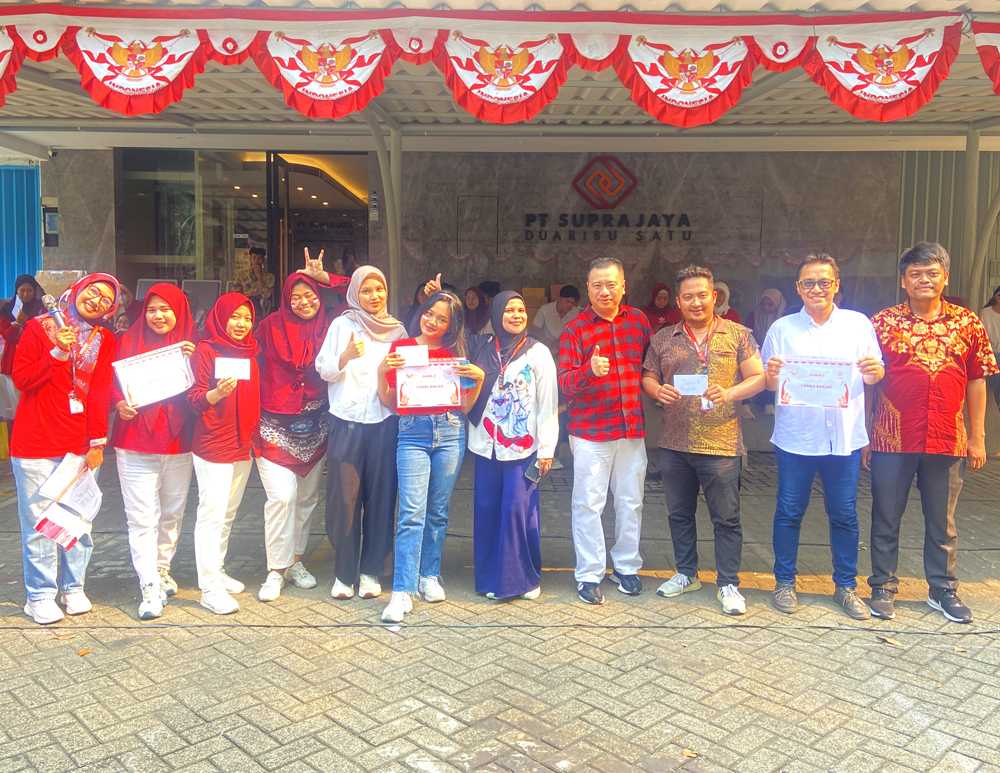 As the opening event, PT. Suprajaya Duaribu Satu held a dress code competition with a theme "Red and white". Employees and families are asked to wear clothing that reflects the color Indonesian flag or typical Indonesian style. Participants compete to show creativity and their national spirit through the clothes they wear. Assessment is carried out based on originality, compactness and aesthetics. This competition not only adds fun, but also strengthen the sense of national identity among participants.