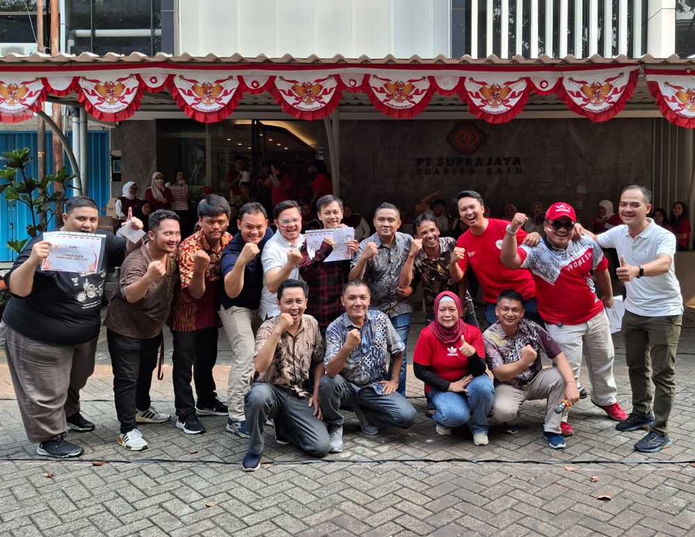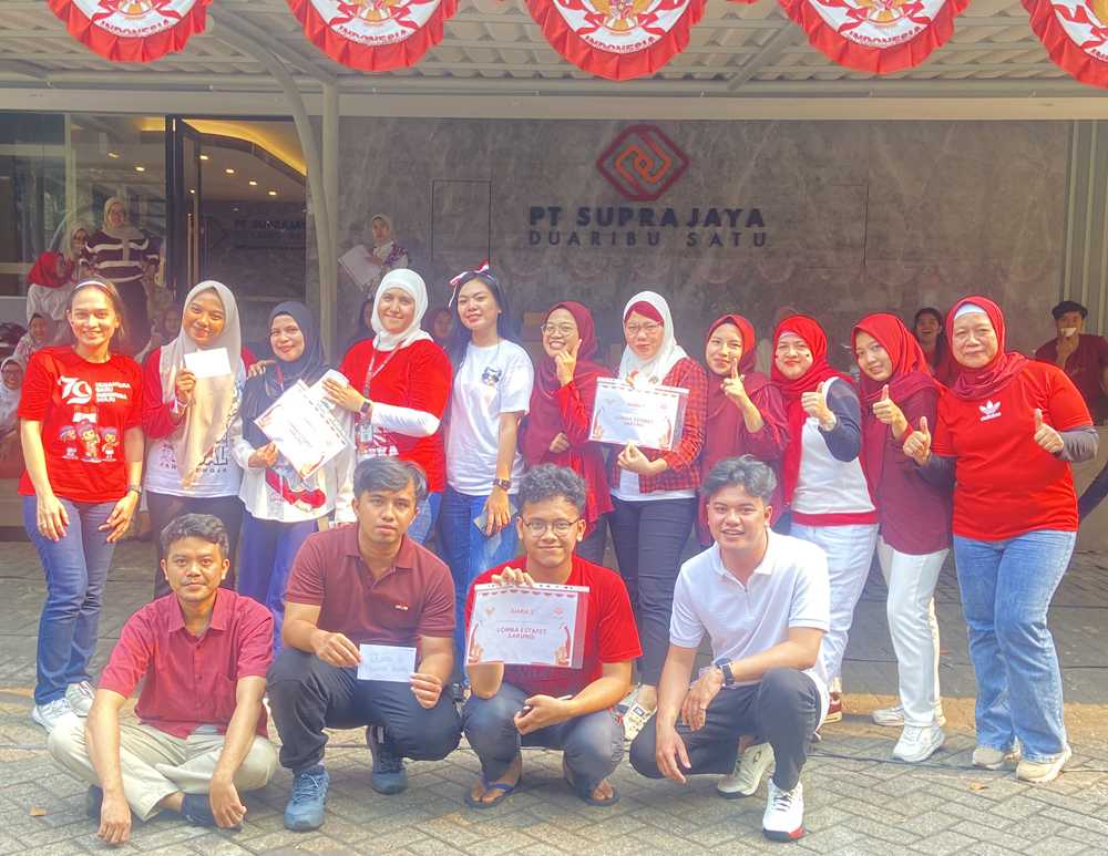 In order to celebrate the 79th Birthday of the Republic of Indonesia, PT. Suprajaya Duaribu One held a series of exciting and enthusiastic competitions involving all employees and family. This event aims to strengthen ties between employees, increase a spirit of togetherness, as well as instilling a sense of love for the country through fun activities. The following are several competitions held in celebration of the Republic of Indonesia's Independence Day this time:
