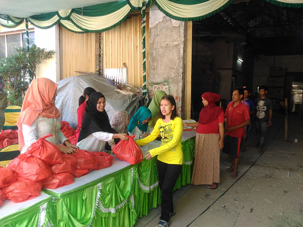 Sunny morning in Jakarta, 20 June 2017 around the PT office. SUPRAJAYA DUARI THOUSAND ONE, a humanitarian action is taking place with great warmth. The company's workers and management are united in the spirit of mutual cooperation working together to distribute basic food packages to local residents. This action is a form of commitment company to share happiness and help ease the economic burden of society in surroundings.